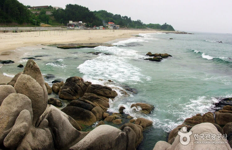 속초에서 북으로 6km, 국도 7번에서 약 500m 들어가는 이곳은 주위경관이 수려해 해마다 찾는 피서객이 증가하고 있으며, 크고 작은 바위와 맑은 바다, 깨끗한 백사장이 어울려 가족단위 피서지로 적합한 곳이다. 백사장 길이 600m, 폭 50m에 수심은 해변에서 30m까지는 1.5~2m이다. (자료출처 : 대한민국 구석구석 - korean.visitkorea.or.kr) 위치 : 펜션에서 약 8.7km 차량 약 13분 거리